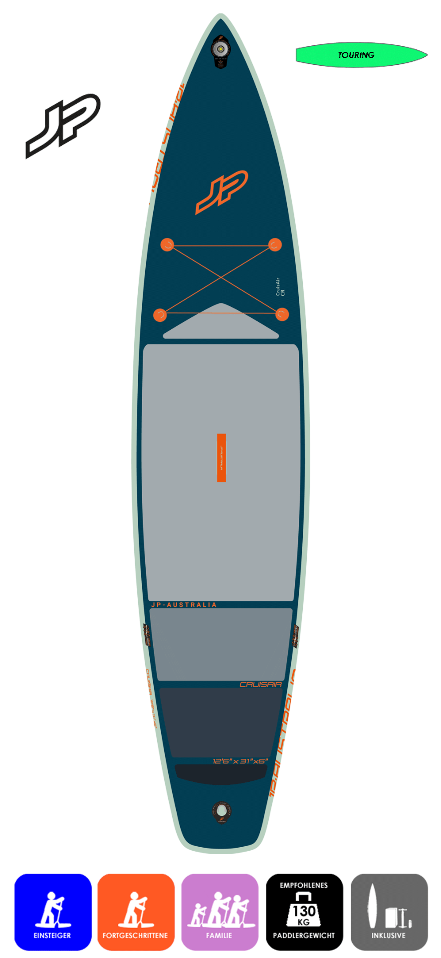 Sehr tragfreudiges Touringboard mit neuester Woven Dropstitch Bauweise mit vorlaminierten Triple Layer und Welded Seam Verfahren (Thermo Fusion) für höhere Traglast und Steifigkeit, bei gleichzeitig geringen Eigengewicht.