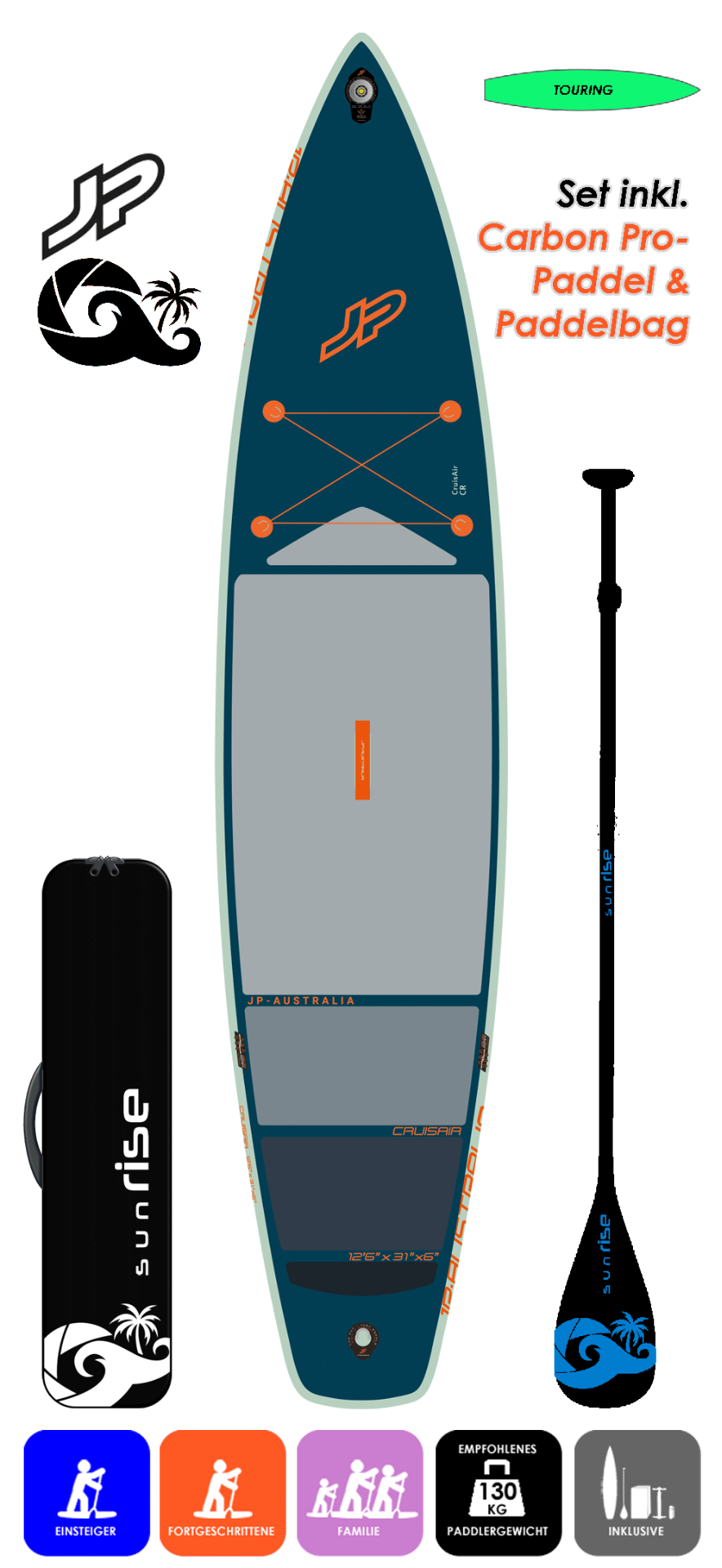 Hier im Set mit sunRISE Carbon Pro 94 3Pcs. Paddel mit Paddelbag im Wert von 318,90€. Info zum Paddel hier.