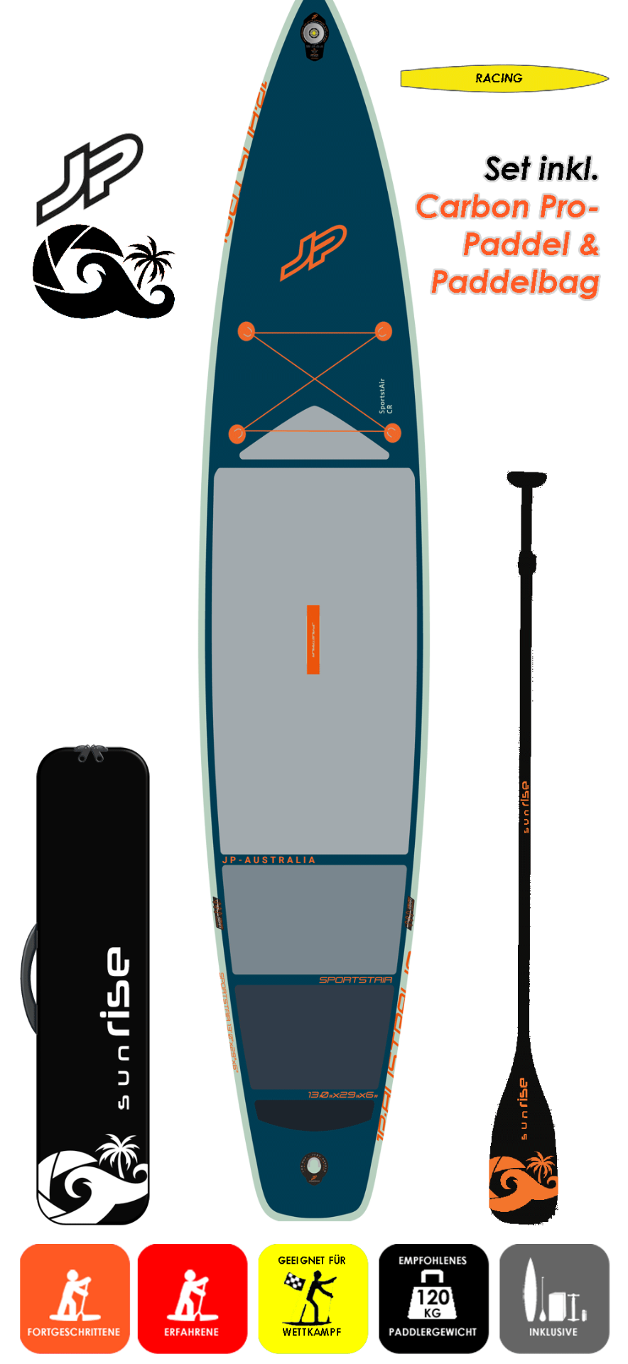 Hier im Set mit sunRISE Carbon Pro 84 3Pcs. Paddel mit Paddelbag im Wert von 318,90€. Info zum Paddel hier.