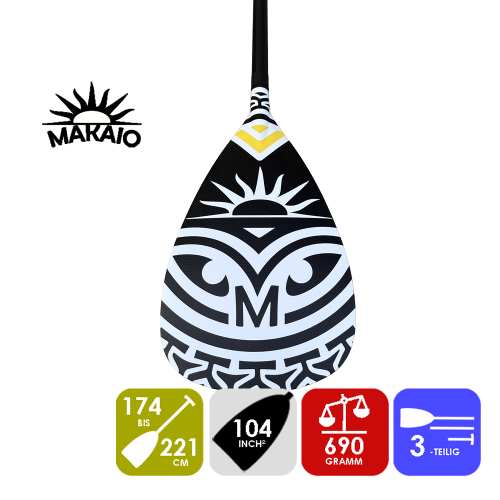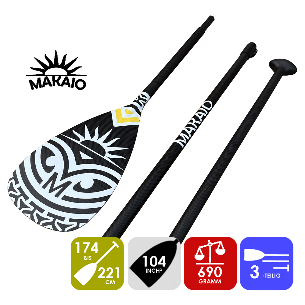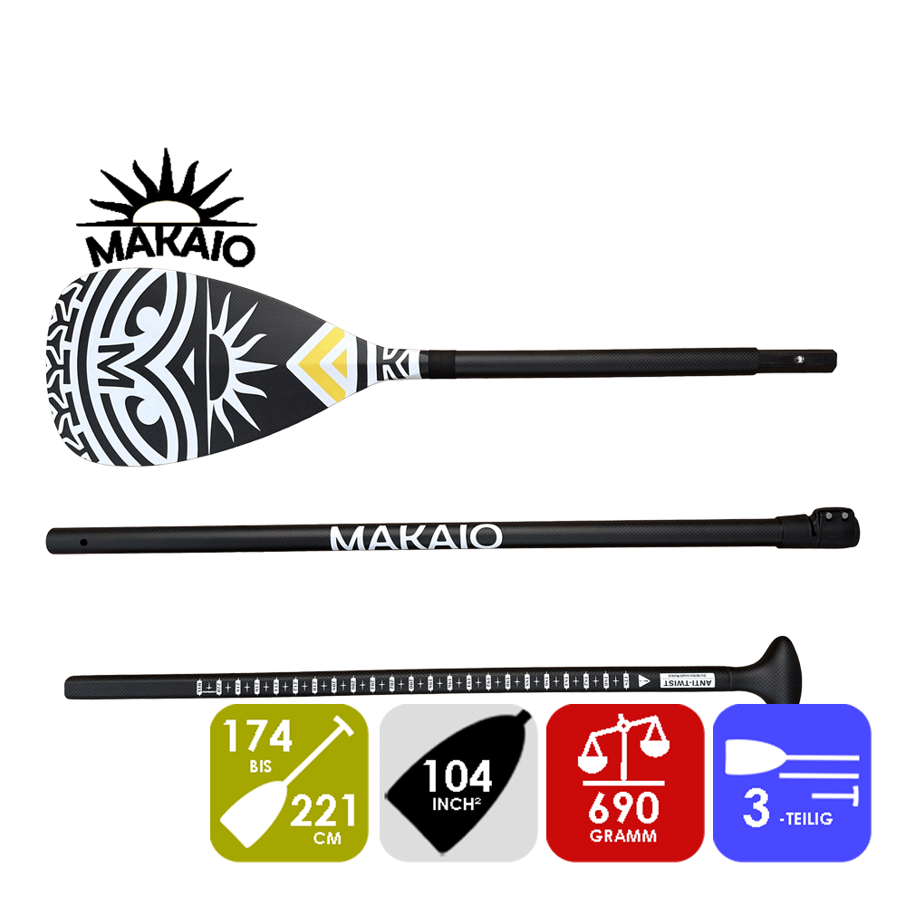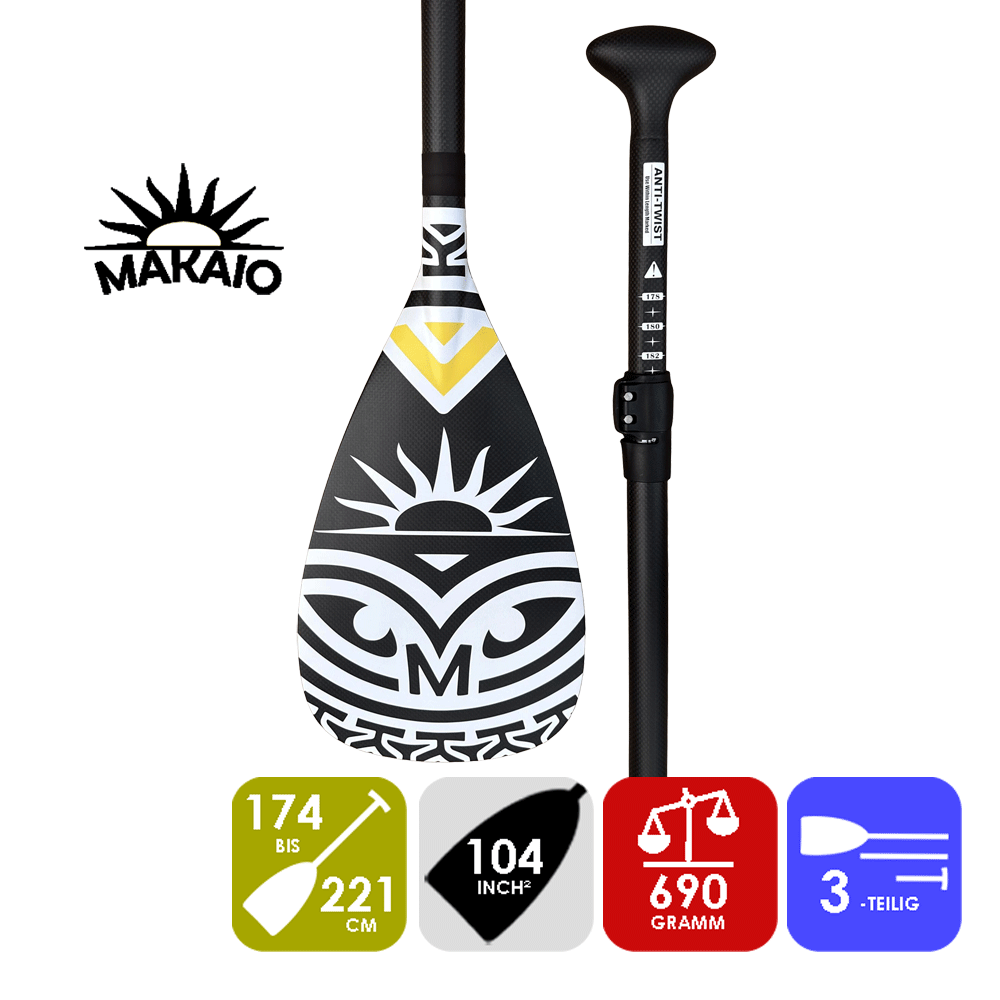 Ein Multi-Talent in Sachen Anwendung. Ideal für die Welle, oder chilliger Feierabends-Runde. Dreiteiler für kraftvolle Paddelschläge. Für absolute Verdrehsicherung hat dieses Paddel nicht nur Anti Twist, sondern auch eine Hexagon-Verbindung im unteren Bereich. Geeignet für Flatwater und in der Welle - empfohlen für Paddler mit Gewicht von mehr als 90kg.