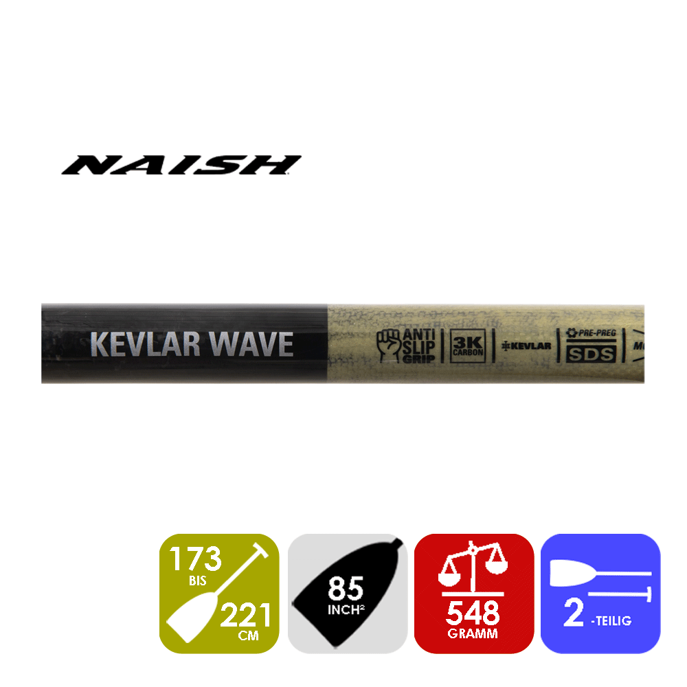 Entwickelt, um viel auszuhalten, bietet das Kevlar-Wave-Paddel das ultimative Gleichgewicht zwischen Stärke, Haltbarkeit und Leistung. Unser äußerst langlebiges und leichtes Monocoque-Paddel mit perfektem Flex für das Surfen. Die Kombination aus Schaft und Blatt bietet ein etwas weicheres Flexmuster, verbunden mit der hohen Haltbarkeit, die unter Surfbedingungen benötigt wird. Mit UD-Carbon und Kevlar im Schaft sowie einem 3K-Carbon-Blatt bietet dieses Paddel den Flex, der für verbesserte Balance und schnelle Übergänge erforderlich ist, zusammen mit erhöhter Haltbarkeit und Stoßfestigkeit.