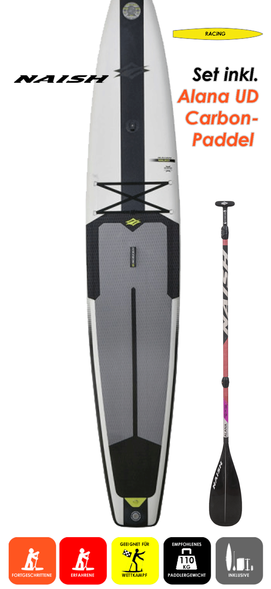 SETPREIS inklusive NAISH Alana UD Carbon 80 RDS 3Pcs. Paddel inkl. Paddelbag im Wert von 479€ (UVP).