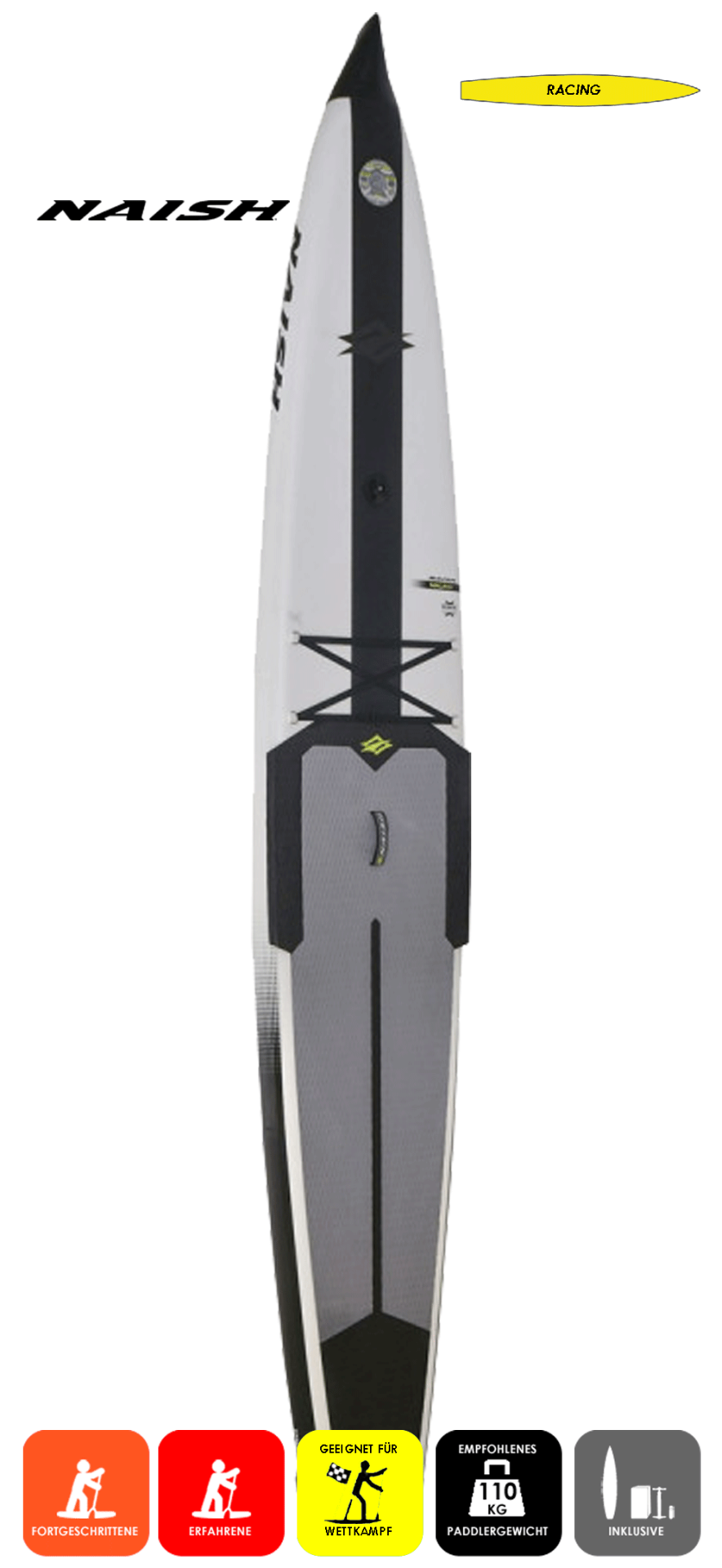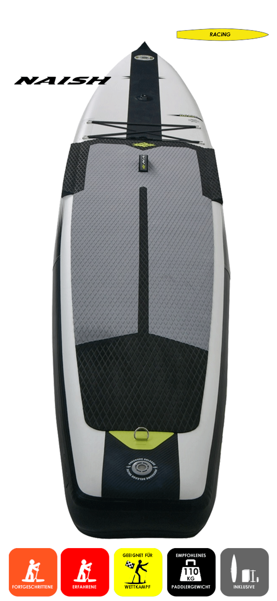 Ausgereiftes und bewährtes High Performance Board für sportliches Racing, ultrasteif dank Druck bis 20PSI und Carbon Stringer. HydroSlick Edges für schnelleres Vorankommen. Für sicheren Stand sorgen die Siderails, die für breiteren Stand sorgen. Nur für den versierten und absolut geübten Paddler auf ruhigen Seen, Flüssen oder anderen ruhigen Binnengewässern.