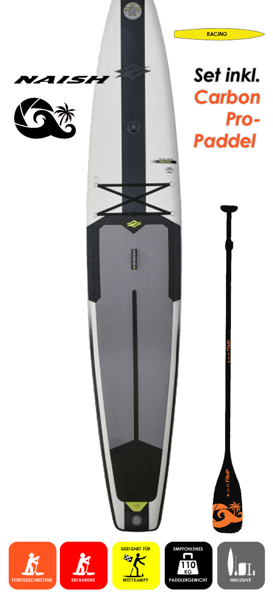 SETPREIS inklusive sunRISE LIma Carbon Pro 84 3Pcs. Paddel im Wert von 269€ (UVP).