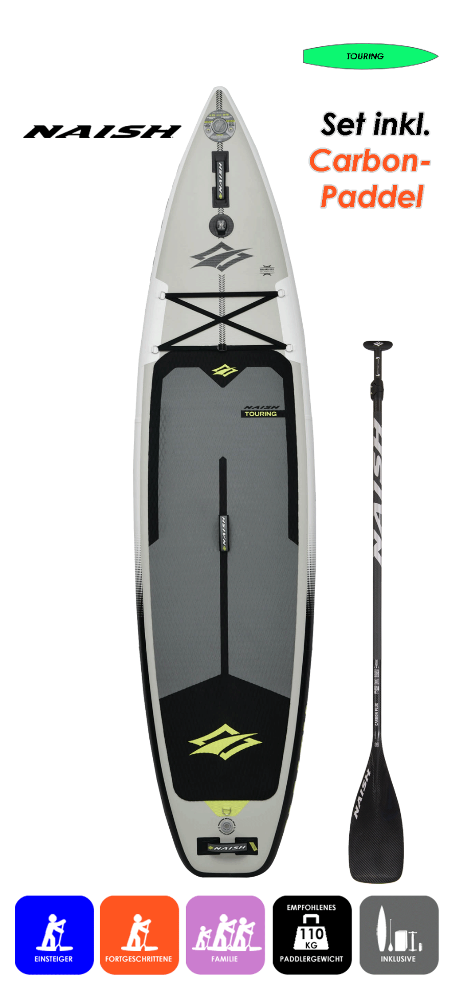 NAISH TOURING 11.6 x 32 mit Carbon Plus 90 SDS Paddel (2026)