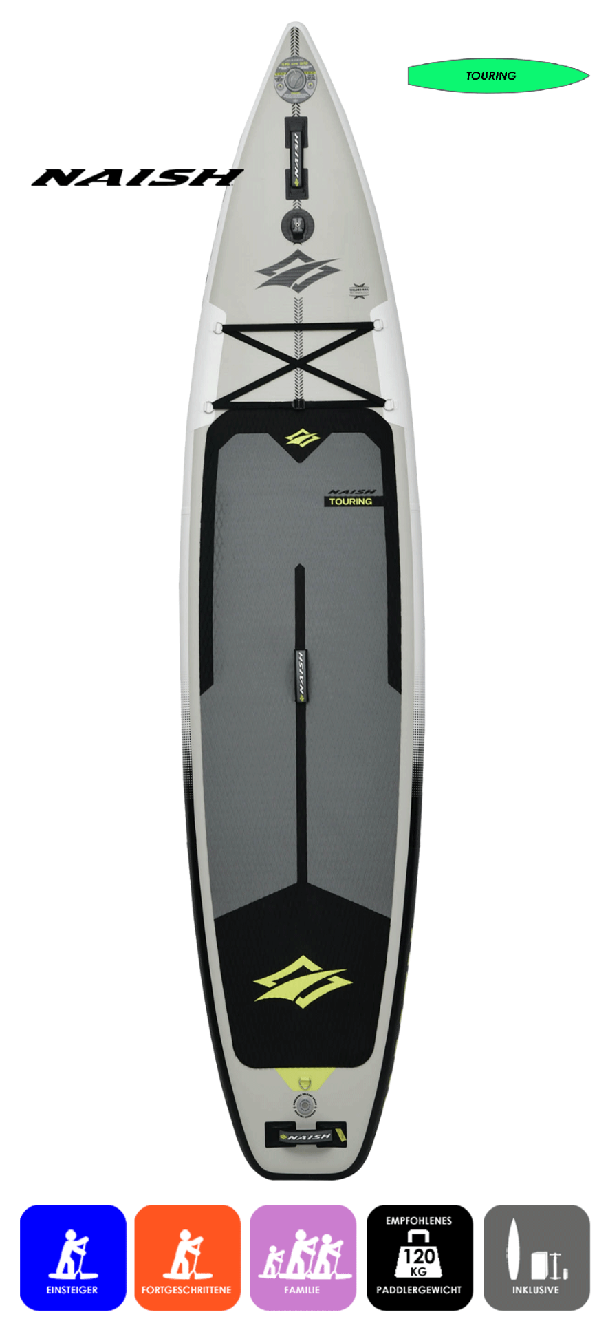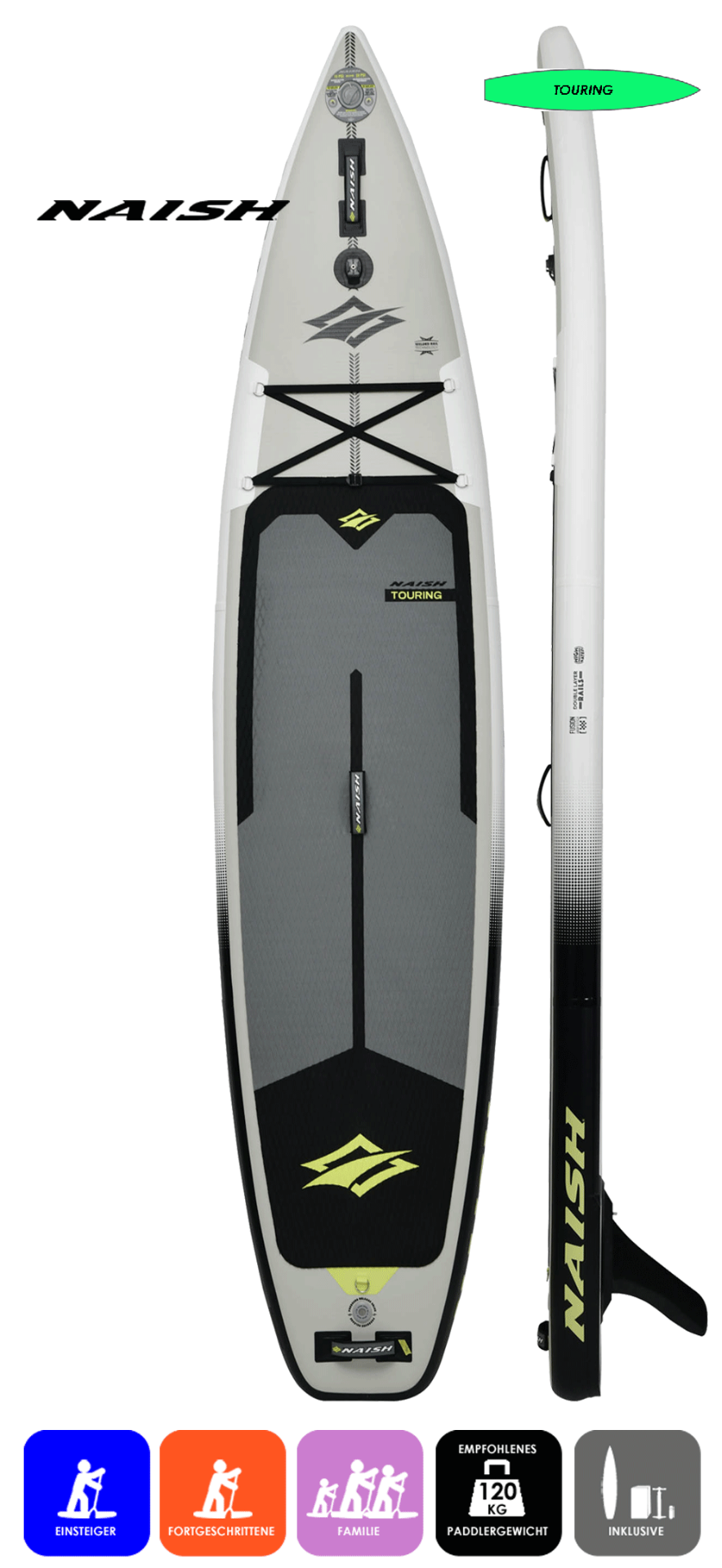 Das beliebteste Touringboard vom Hersteller Naish. Kippstabiler und tragfreudiger Tourer, für die, die gerne auf Tour gehen möchten. Egal ob Flusstour mit Familie, oder ausgiebige entspannte Runde auf See oder Meer mit Freunden. Neuster Woven Dropstitch und Double Rails im Thermo Fusion Verfahren für beeindruckende Steifigkeit und erhöhte Sicherheit.